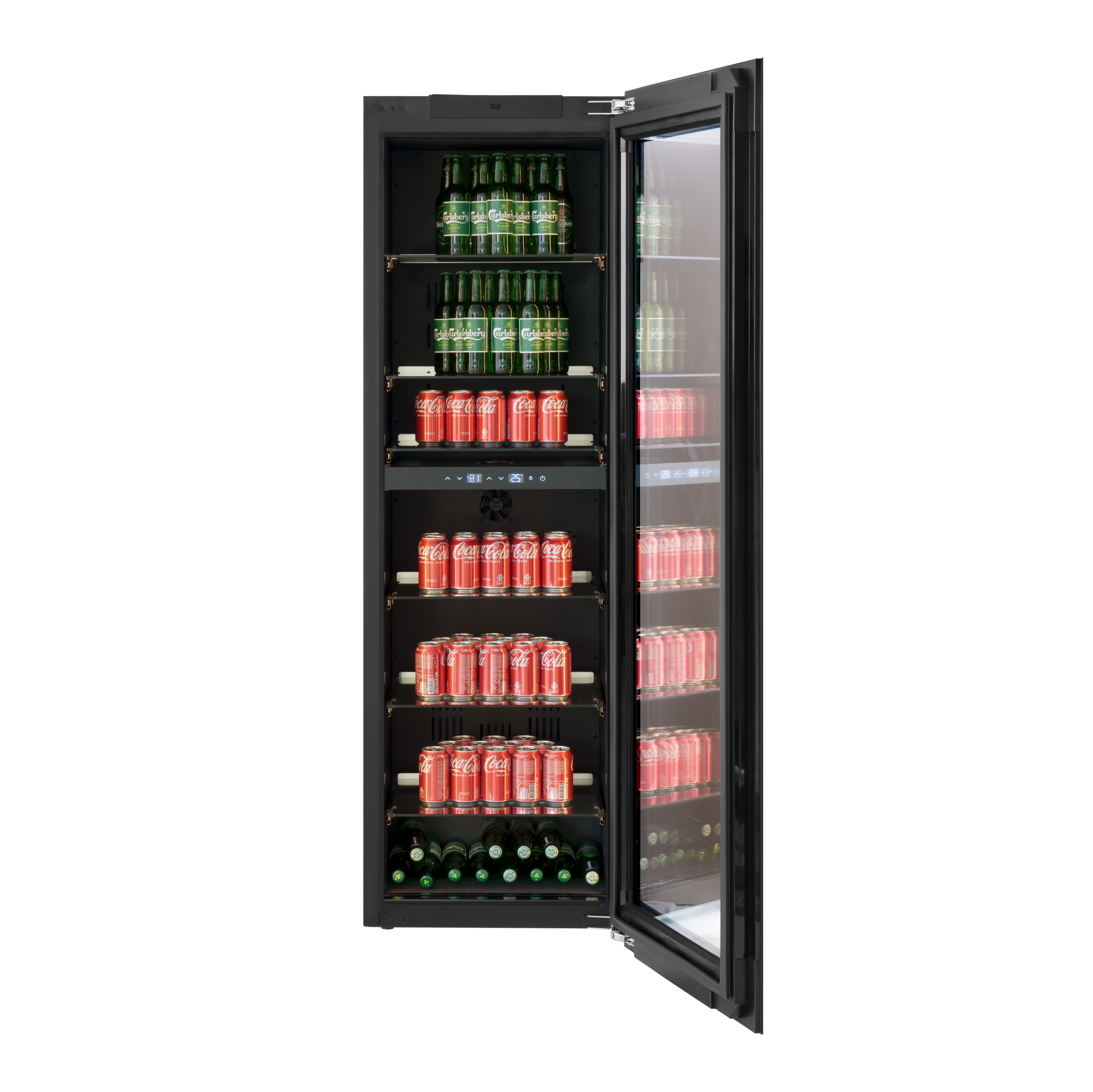 The shelf heights in our beverage coolers have been designed to cater a range of bottle heights and shapes meaning we are able to store both small cans and larger 500mL beer bottles - Shelves can be removed or added should you need more storage capacity.