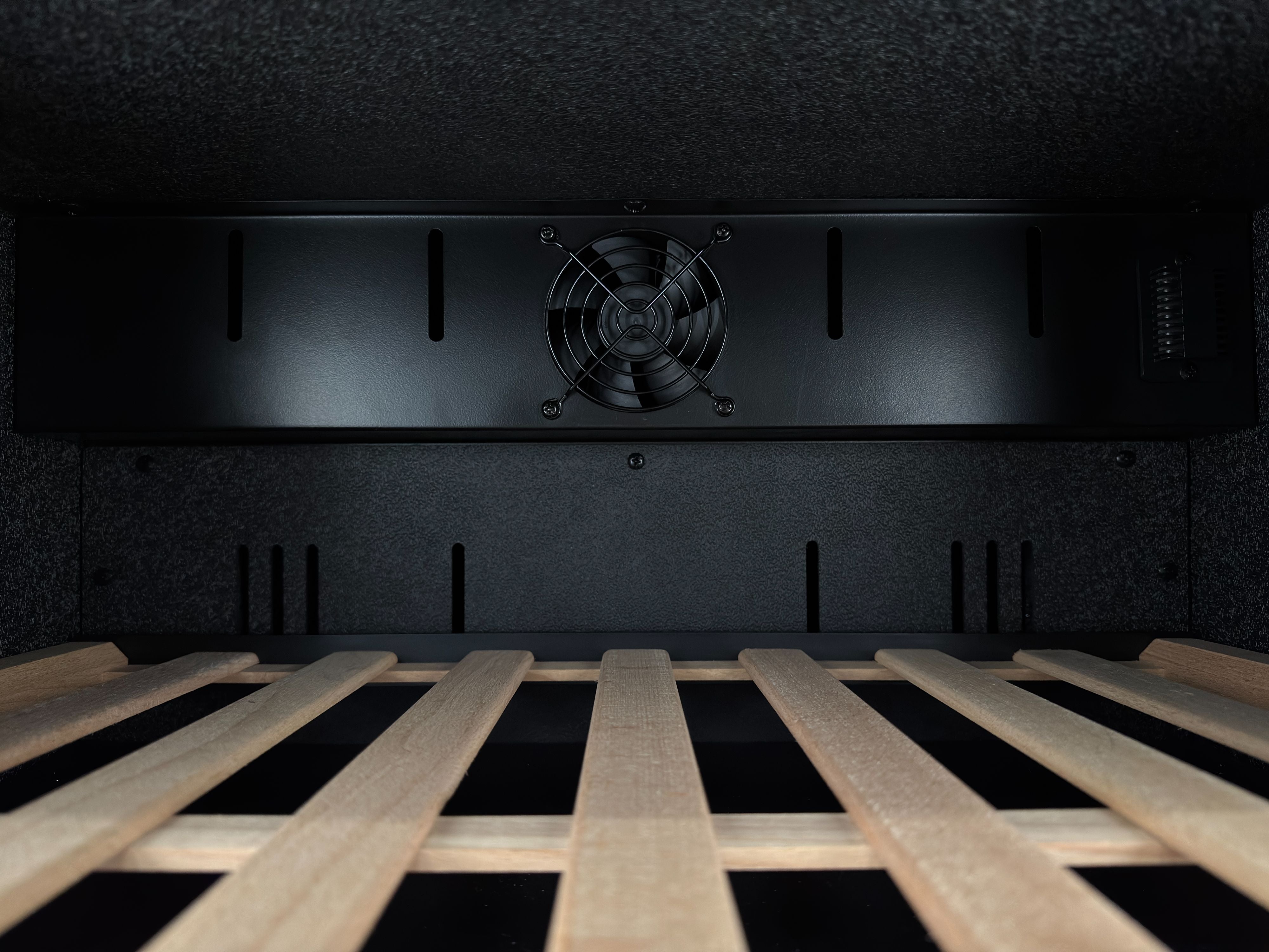 The interior of the wine fridge has a textured finish to encourage humidity regulation of 55-85%