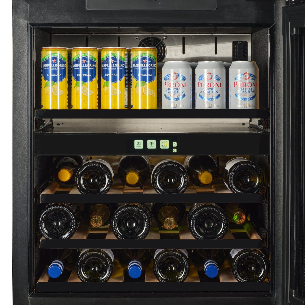 All push2open and panel ready models feature a TFT display with in built lighting options catering a multitude of living area settings - match the wine/beverage cooler lights to your furniture.