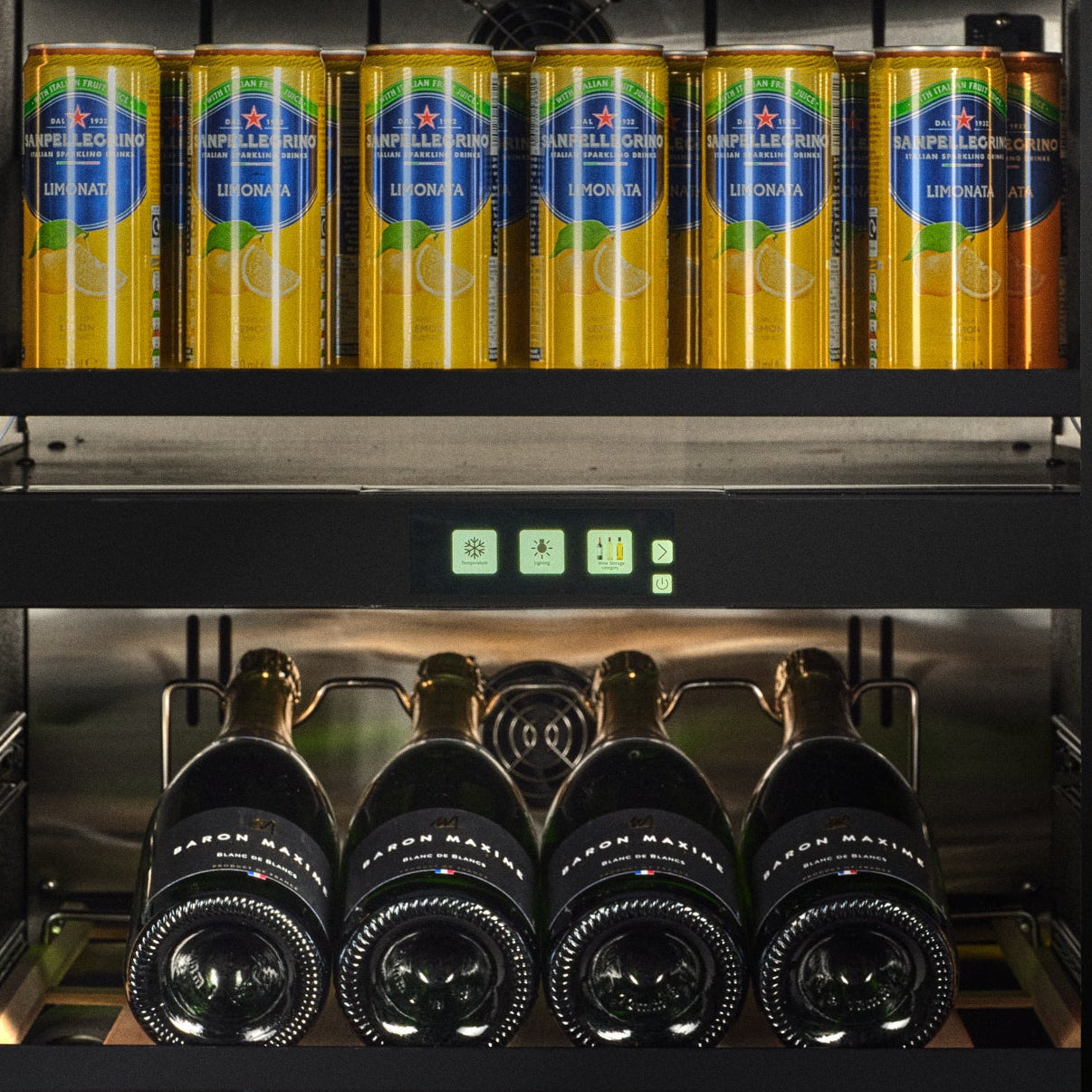 Store your beverages on telescopic glass shelves and keep your wines chilled at the perfect temperature with telescopic beech wood shelves, suitable for Burgundy and Champagne bottles.