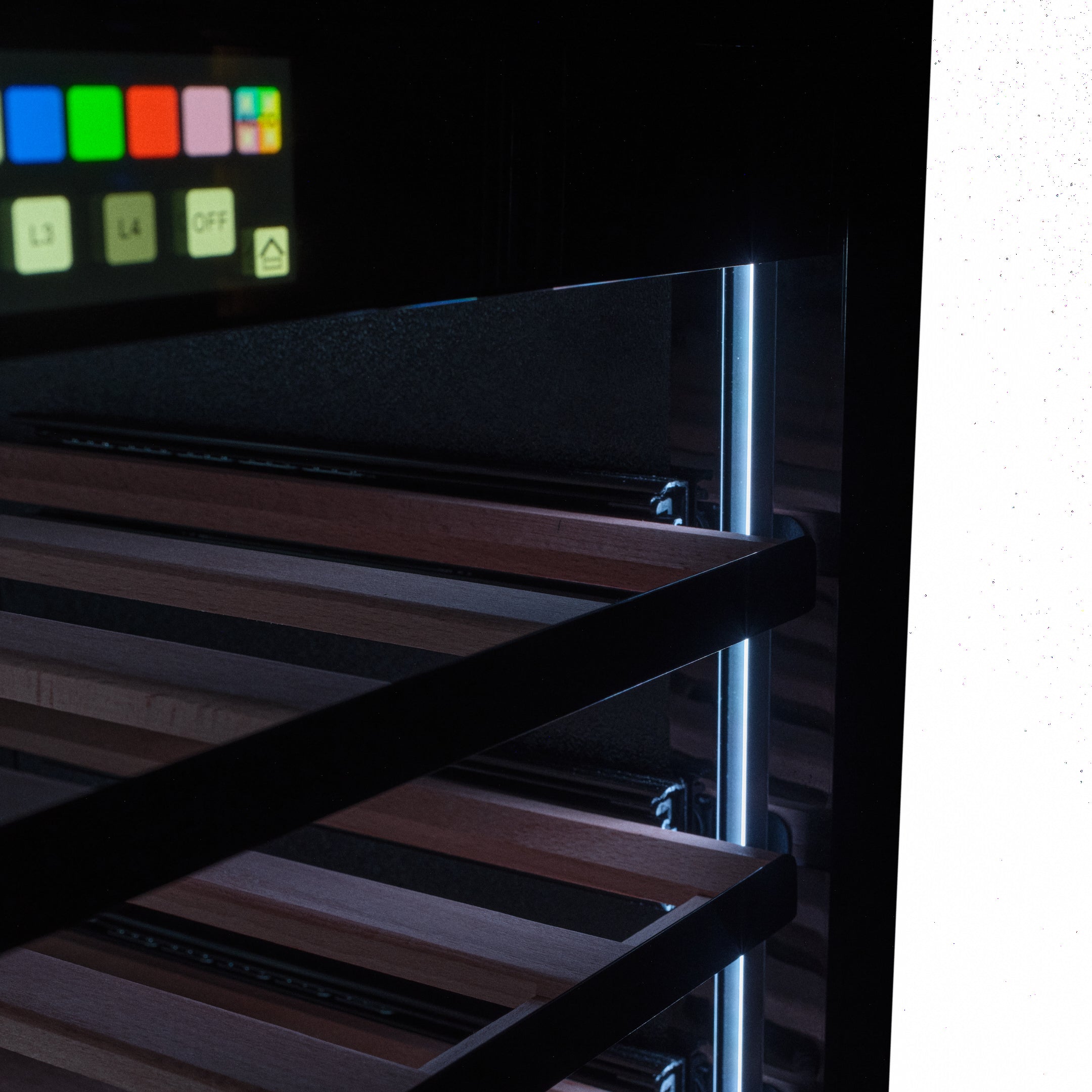 All push2open and panel ready models feature a TFT display with in built lighting options catering a multitude of living area settings - match the wine/beverage cooler lights to your furniture.